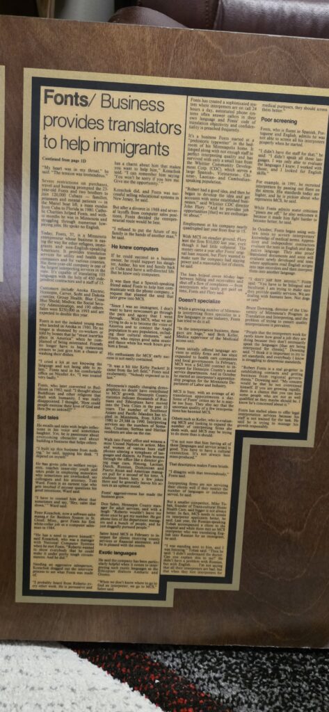 Roberto’s introduction to the profession came when a Spanish-speaking friend asked him to help communicate with the phone company and translate a birth certificate.